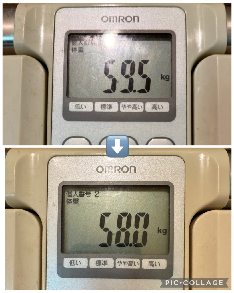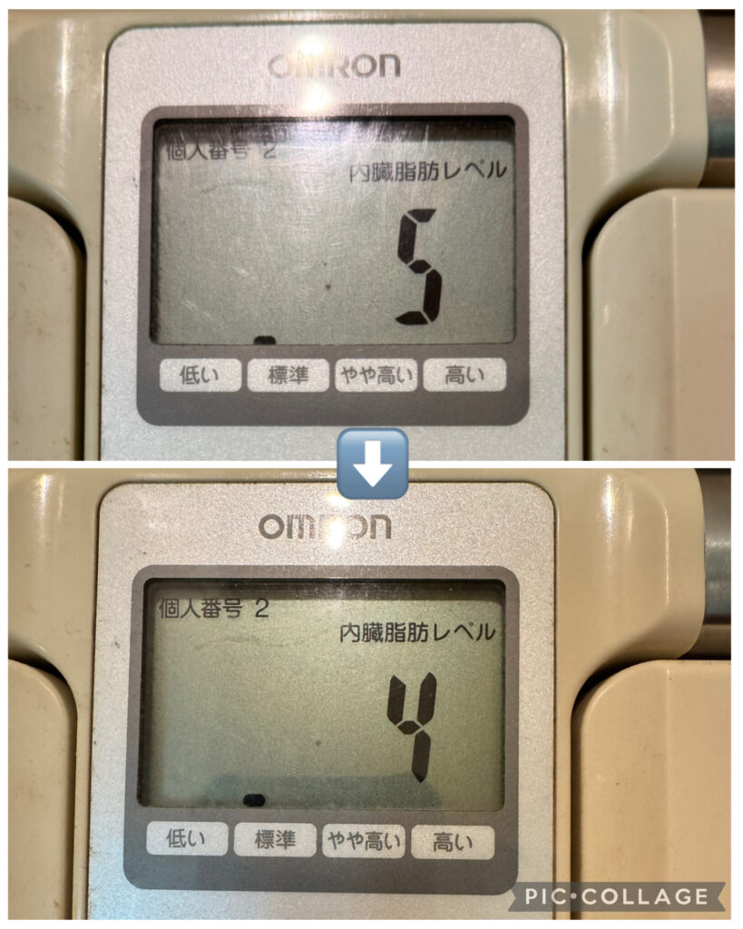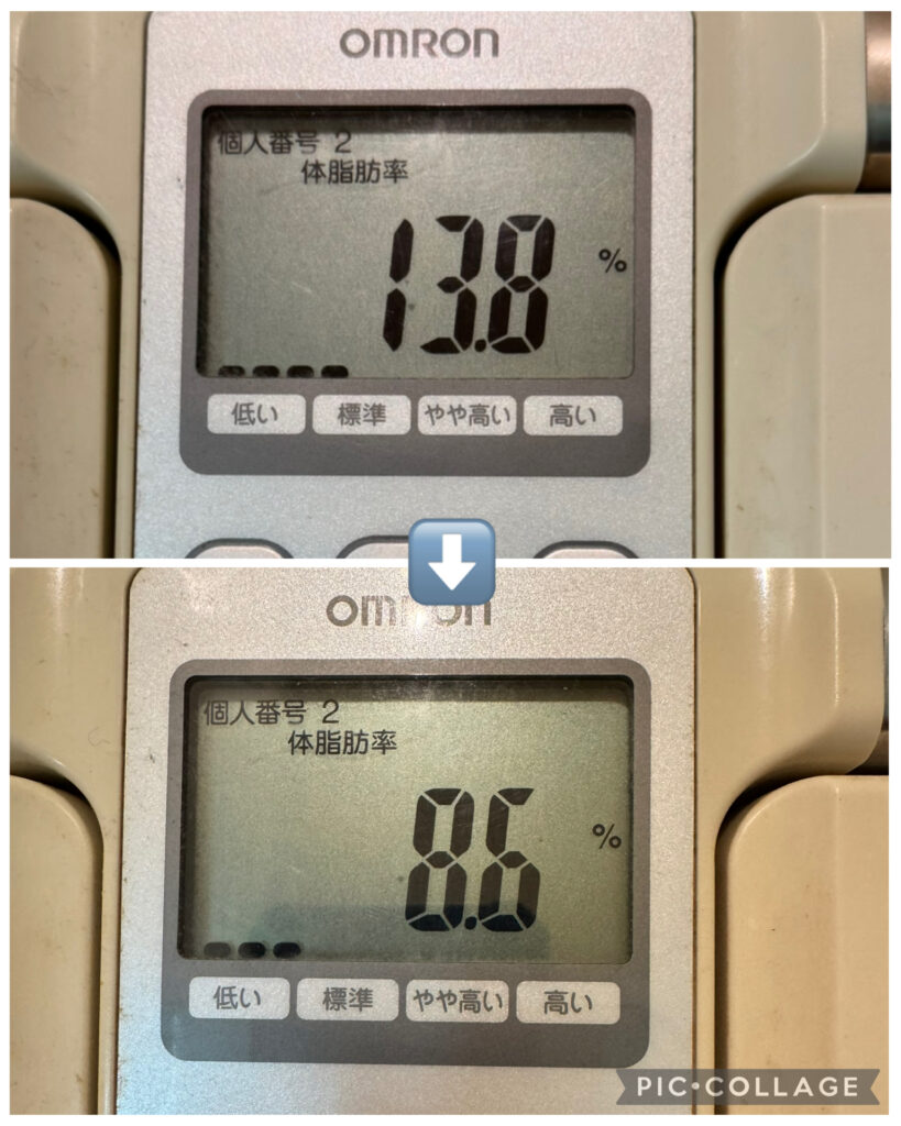 見た目的にはそれ程変わってはないですが、数値的にはカラダに無理のかからない範囲で、シェイプ出来たかなと。