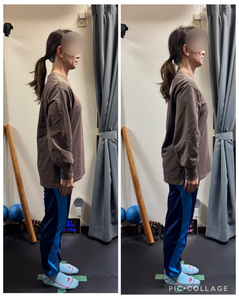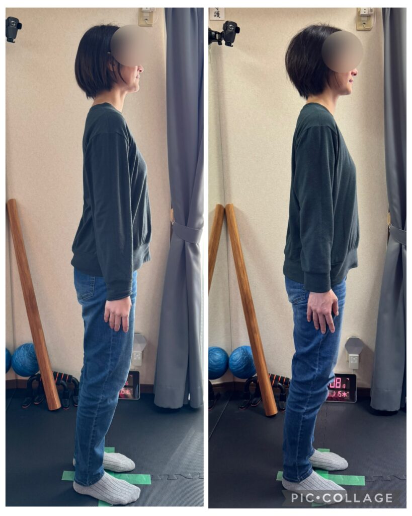 首の付け根から、倒れた様な見た目になっていると、頭の重みをコントロールするために、余計な所に力が入ってしまいます。