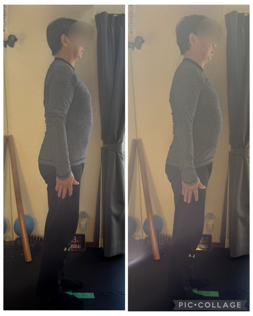 全身ストレッチを積み重ねると、ストレッチ前後での姿勢の変化が少なくなります=普段から姿勢に気をつけて生活出来ているという事です。